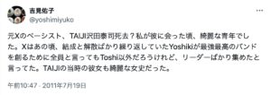当時の嫁がどんな女性だったのか、情報は少ないですがTAIJIさんが死去された後に若き日の彼と彼女を知る人がSNSにこんな投稿をしていました。